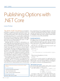 Publishing with .NET Core brings a lot of information to con- sider. Traditionally, the typical deployment option for a desktop or console application in the .NET Framework has been an execut- able. For an ASP.NET application, it’s a DLL. These were the only available options and they were dependent on the type of applica- tion being built. With the new paradigm, the significant aspect is whether .NET Core is installed or not. The FDD technique requires that .NET Core be installed while the SCD technique brings the .NET Core runtime with it, which means it can run on a machine that doesn’t have .NET Core installed. An ASP.NET application can now additionally be packaged as a standalone console application because it brings its own Web server (Kestrel) as an executable.